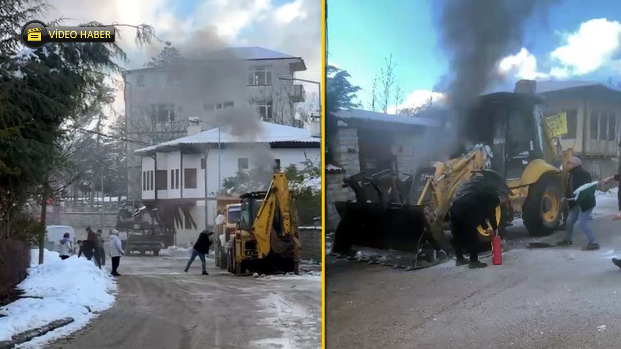 Olay, Bağlarbaşı Mahallesi'nde meydana geldi. Yol kenarında park halinde bulunan bir iş makinesinin motor kısmından henüz bilinmeyen bir nedenle dumanlar yükselmeye başladı. Çevredeki vatandaşlar, durumu itfaiye ekiplerine bildirirken bir yandan da kartopu ve kürekle kar atarak yangını söndürmeye çalıştı.