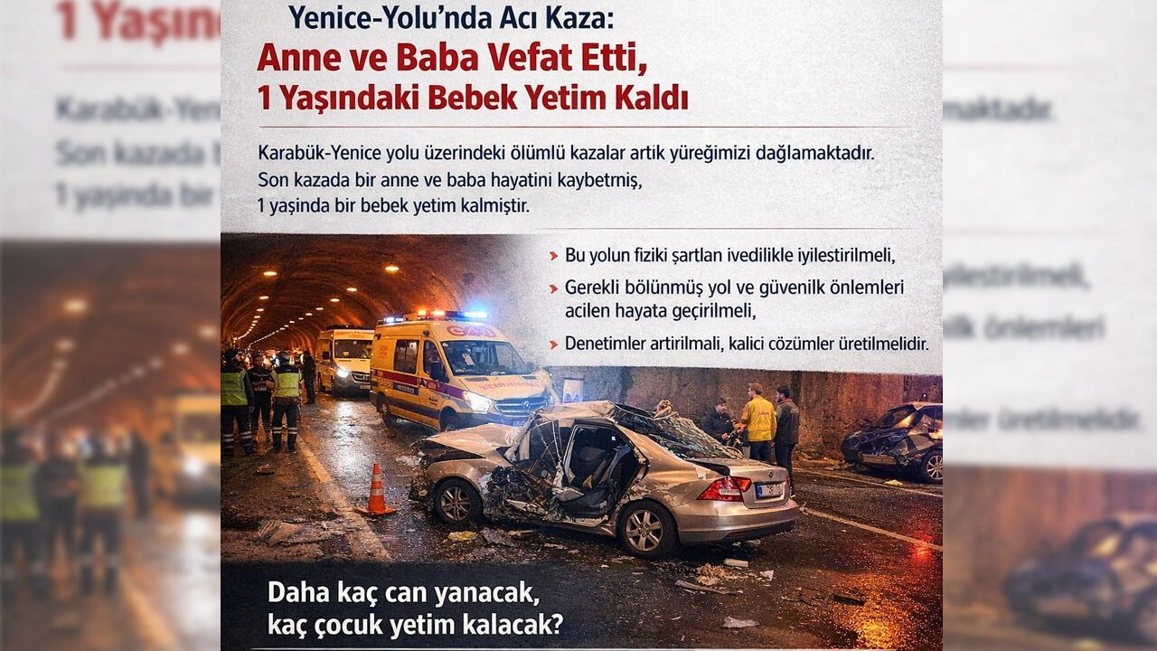Yapılan açıklamada, "Karabük-Yenice yolu üzerinde uzun zamandır devam eden ve ne yazık ki artık “sıradanlaşan” ölümlü trafik kazaları, hepimizin yüreğini yakmaya devam etmektedir.