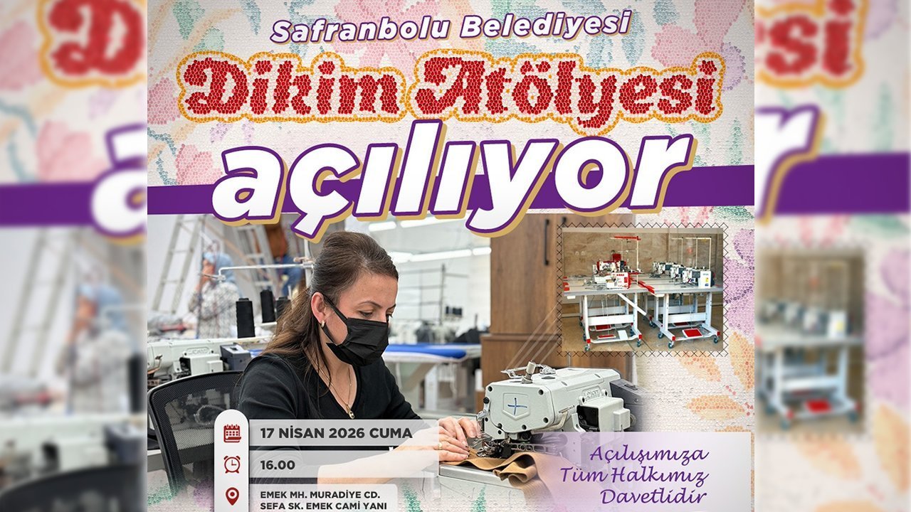 Emek Mahallesi Muradiye Caddesi Sefa Sokak’ta (Emek Camii yanı) kurulan Safranbolu Belediyesi Dikim atölyesi resmi açılış töreni, 17 Nisan 2026 Cuma günü saat 16.00’da gerçekleştirilecek.