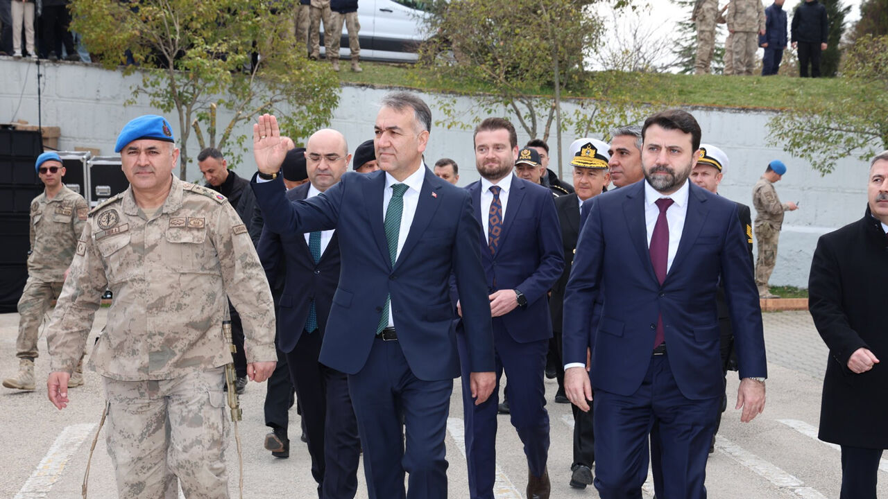 Saygı duruşu ve İstiklal Marşı ile başlayan programda, Türk bayrağının göndere çekilmesinin ardından tören resmi olarak başladı.