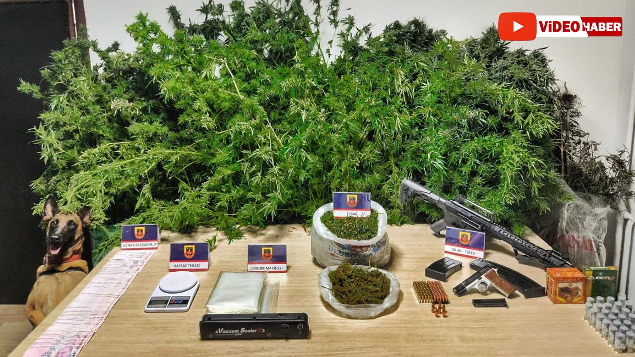 Safranbolu ilçesinde gerçekleştirilen operasyonda, üç şüphelinin bulunduğu çiftlikte ve çevresindeki ormanlık alanda yapılan aramalarda, 56 kök skunk bitkisi, 4,63 gram kubar esrar, 2 gram kenevir tohumu, 1 adet vakum makinesi, 119 adet vakum ambalaj poşeti, 1 adet hassas terazi, 13 adet eldiven, 1 adet ruhsatsız 9 mm tabanca ve bu tabancaya ait şarjör ile 107 adet fişek, 1 adet ruhsatsız av tüfeği, 3 adet şarjör, 39 adet av tüfeği kartuşu ve 27 bin 670 TL nakit para ele geçirildi. Ayrıca, 3 cep telefonuna da inceleme yapılmak üzere el konuldu.