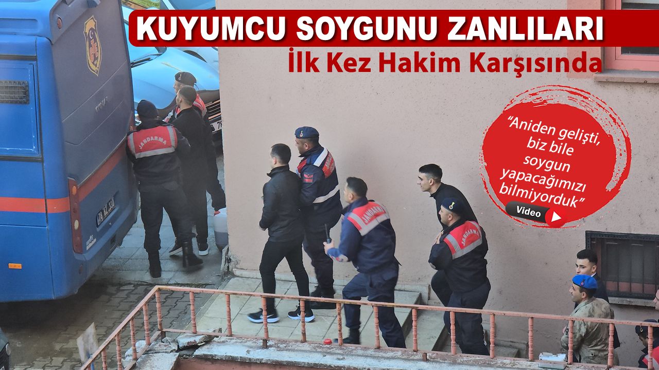Karabük’ün Safranbolu ilçesinde silah ve levye ile girdikleri kuyumcu dükkanından 20 kilo altını alarak kaçan ve 15 saat sonra yakalanarak tutuklanan 5 kişi, ilk kez hakim karşısına çıktı. 3 sanık, yaptıklarından pişman olduklarını belirterek, "O gün karar verdik, biz bile soygun yapacağımızı bilmiyorduk" dedi.