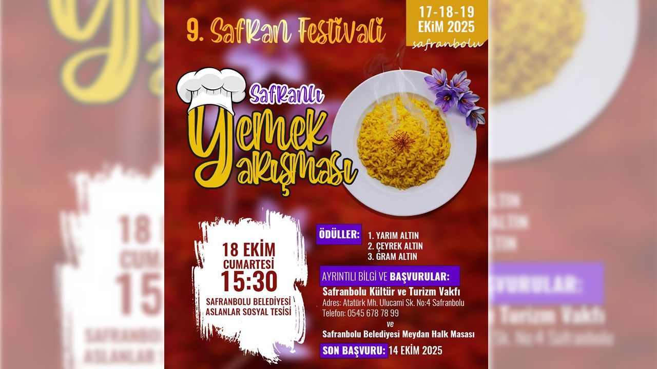 Safranbolu’nun coğrafi işaretli ürünü olan safranı tanıtmak ve gastronomi kültürünü desteklemek amacıyla düzenlenecek yarışmada, katılımcılar en lezzetli safranlı yemeklerini jüri karşısında sergileyecek. Yarışmada dereceye girenlere birinciye yarım altın, ikinciye çeyrek altın, üçüncüye ise gram altın ödülleri verilecek.