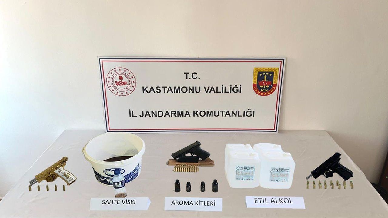 Edinilen bilgiye göre, Kastamonu İl Jandarma Komutanlığı ekiplerince yol kontrol ve arama faaliyetleri sırasında, 2 adet ruhsatsız tabanca, 1 adet kurusıkı tabanca, 65 adet tabancalara ait fişek, 4 adet tabanca şarjörü, 20 litre etil alkol, 5 litre sahte alkol ile 4 adet alkol aroma kiti ele geçirildi.