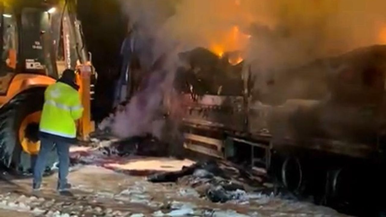 Bolu'da seyir halindeki tekstil malzemesi yüklü tır, alev alev yandı. Yangın nedeniyle D-100 karayolunun Ankara istikameti, 3 saat ulaşıma kapandı.