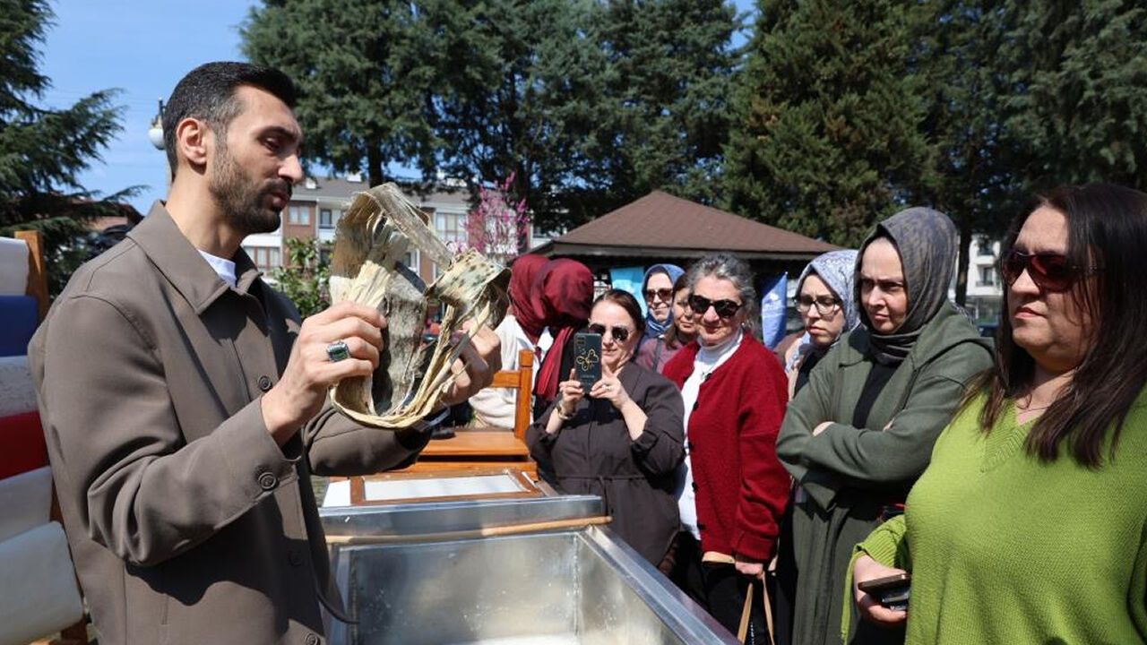 Bölgede yetişen tarımsal ürünlerin atıklarından sanatsal kağıtlar ürettiklerini söyleyen Düzce Üniversitesi öğretim üyesi; endüstriyel kağıtların kimyasal yöntemlerle üretilmesinden dolayı ömrünün kısa olduğuna işaret ederek, doğal yöntemler kullanılarak üretilen geleneksel kağıtların bin yıl geçse de sanatsal kağıt olarak gelecek nesillere aktarılabileceğinin altını çizdi.