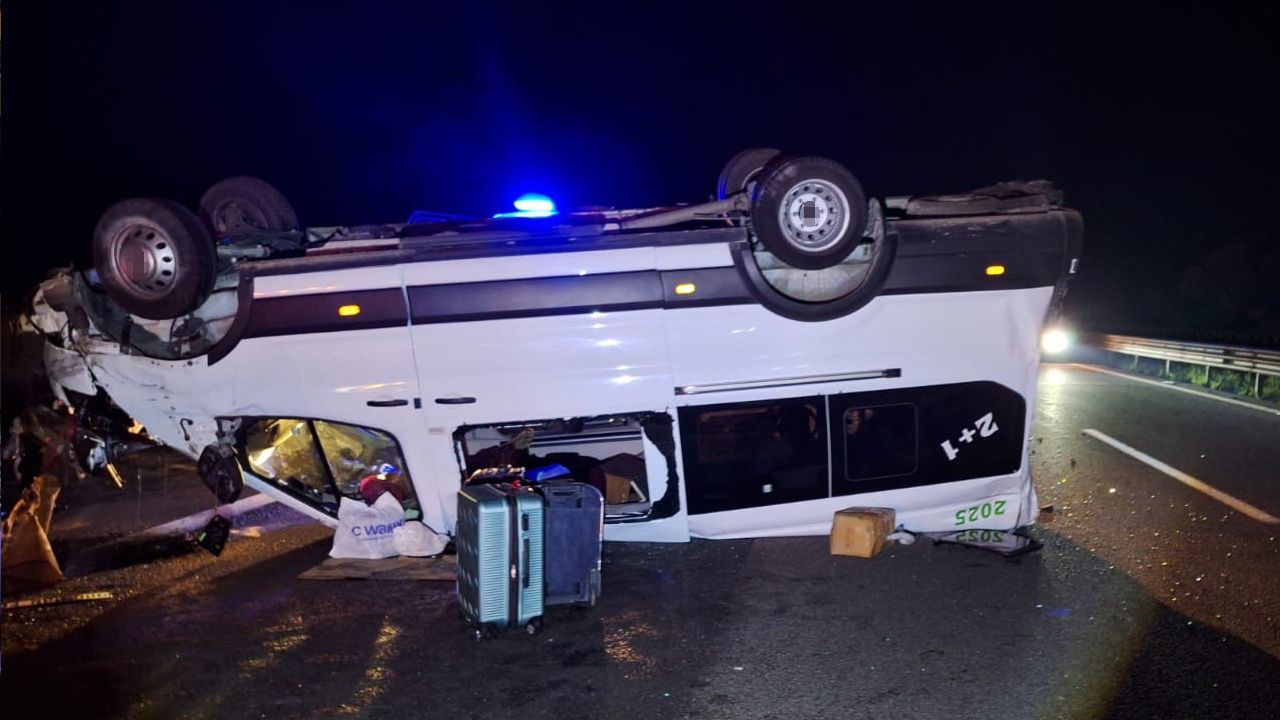 Kaza nedeniyle otoyolda kısa süreli trafik aksarken, devrilen minibüsün yoldan kaldırılmasının ardından ulaşım normale döndü.