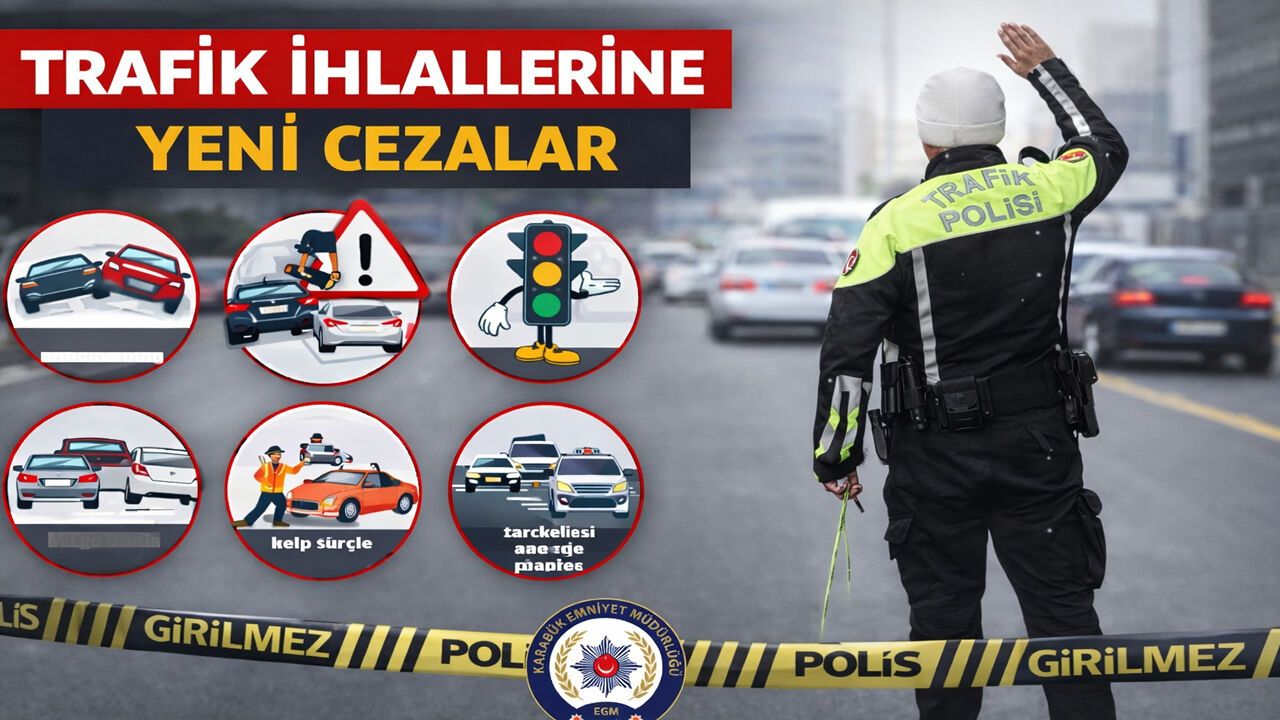 Trafikte kural ihlallerinin önüne geçilmesi amacıyla cezai yaptırımlarda yeni bir dönem başlıyor. Karabük Emniyet Müdürlüğü tarafından paylaşılan bilgilere göre birçok trafik ihlalinde para cezaları ciddi oranda artırılırken, bazı durumlarda araçların trafikten men edilmesi ve sürücü belgelerine el konulması gibi yaptırımlar da uygulanacak.