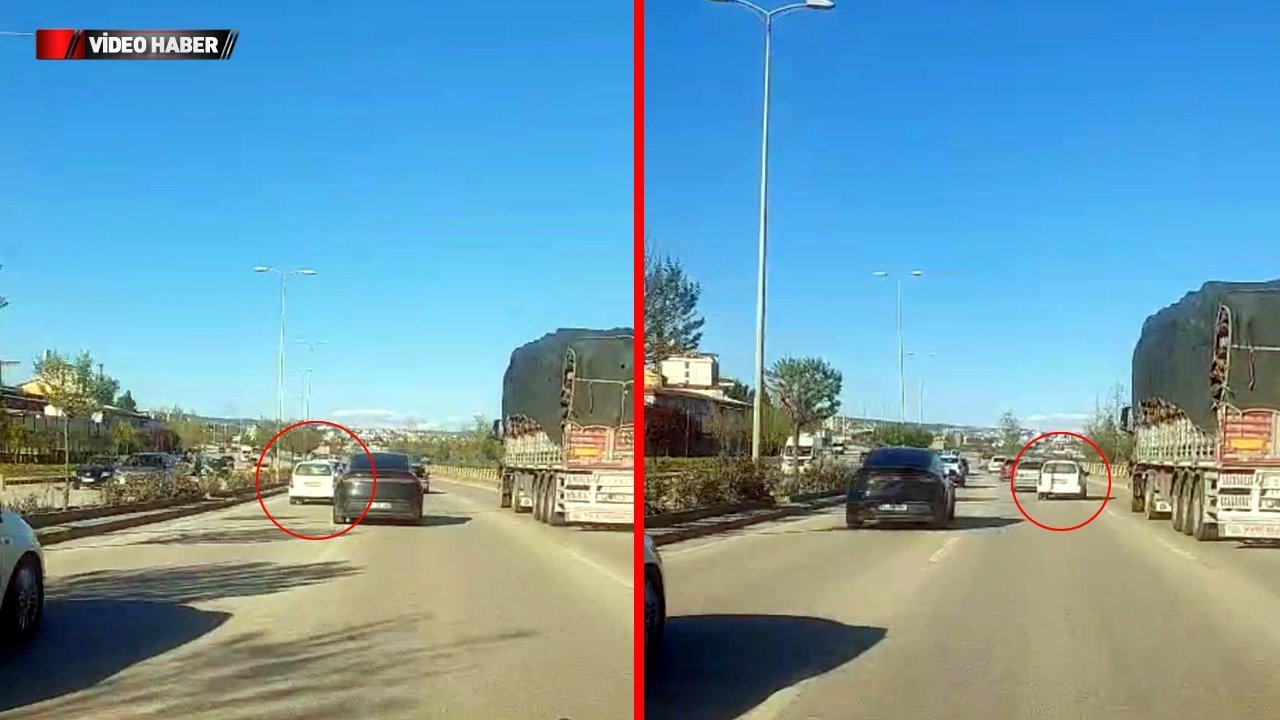 Hem kendi canını hem de diğer sürücülerin güvenliğini tehlikeye atan sürücünün tehlikeli hareketleri, başka bir sürücü tarafından cep telefonu kamerasıyla kaydedildi.