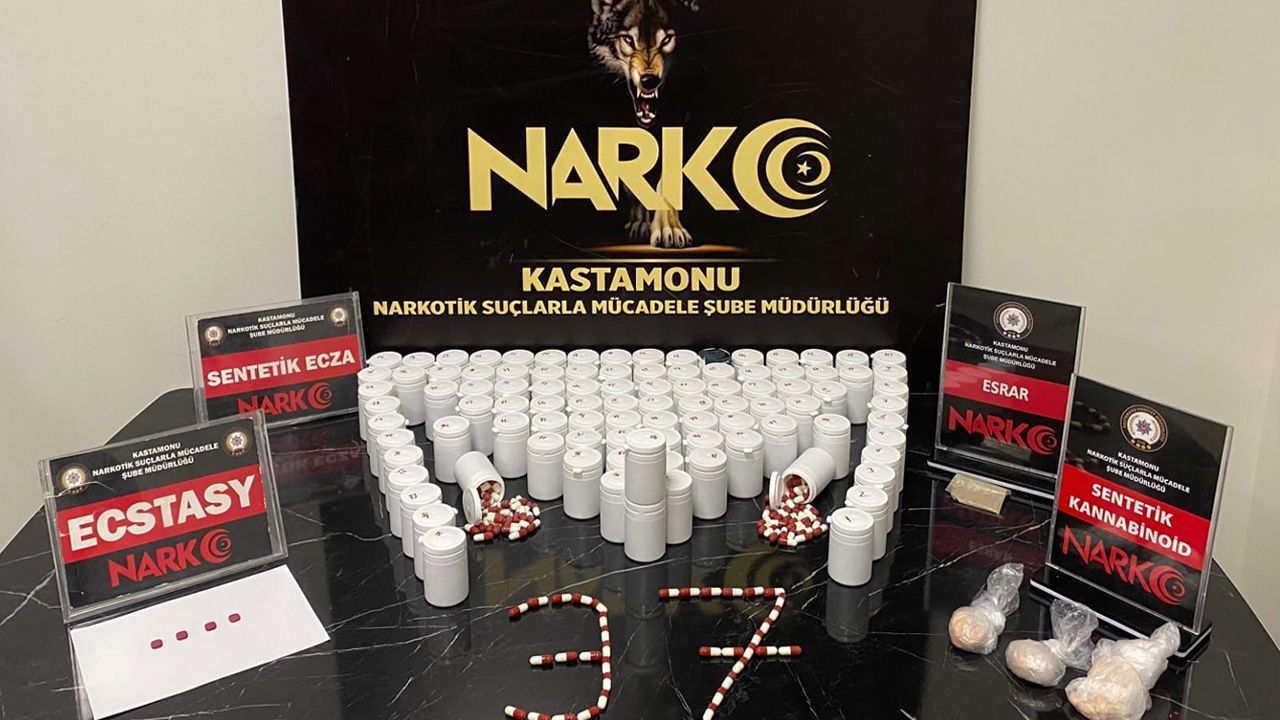 Edinilen bilgiye göre, Kastamonu İl Emniyet Müdürlüğü Narkotik Suçlarla Mücadele Şube Müdürlüğü ve İstihbarat Şube Müdürlüğü ekiplerinin ortak çalışmasıyla uyuşturucu madde kullanan ve satan şahıslara yönelik operasyon düzenlendi. Yapılan operasyonda 5 bin 473 adet sentetik ecza, 58,67 gram sentetik kannabinoid, 4 adet ecstasy ve 2,79 gram esrar ele geçirildi.