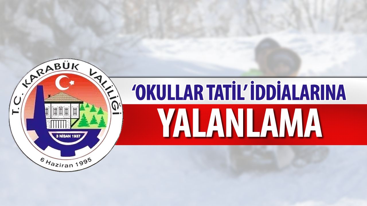 Karabük Valiliği, bazı sosyal medya hesapları ve internet sitelerinde “2 Ocak Cuma günü okullar tatil edildi” şeklinde paylaşılan görsellerin be duyuruların sahte olduğu vurgulandı.