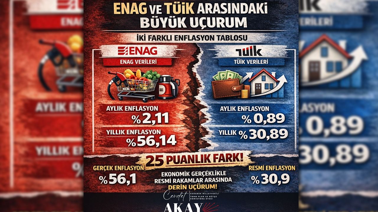 Cumhuriyet Halk Partisi (CHP) Karabük Milletvekili Cevdet Akay, Türkiye’de açıklanan enflasyon verilerine ilişkin yazılı bir açıklama yaparak, ENAG ve TÜİK verileri arasındaki büyük farka sert tepki gösterdi. Akay, enflasyonun halkın yaşadığı gerçeklerle örtüşmediğini vurgulayarak, iktidarın ekonomik tabloyu kâğıt üzerinde farklı göstermeye çalıştığını ifade etti.