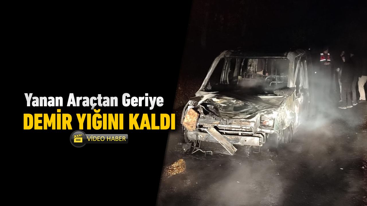 Karabük'ün Yenice ilçesinde seyir halindeyken alev alan hafif ticari araç tamamen yanarak kullanılmaz hale geldi.