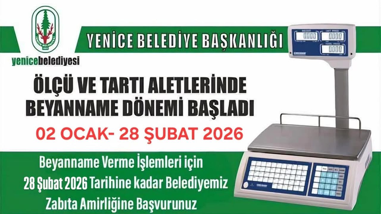 Yenice Belediyesi, ölçü ve tartı aletleri kullanan esnaf ve işletmeleri ilgilendiren beyanname sürecinin başladığını duyurdu. Belediye tarafından yapılan açıklamaya göre, ölçü ve tartı aletlerine ilişkin beyanname verme dönemi 2 Ocak – 28 Şubat 2026 tarihleri arasında gerçekleştirilecek.