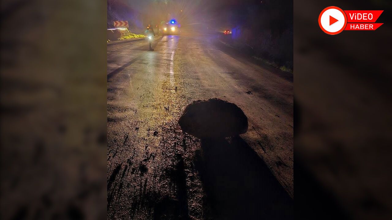 Karayolları ekiplerinin iş makineleriyle yaptığı çalışmalar sonucu kaya parçaları yoldan kaldırıldı, trafik akışı yeniden normale döndü.