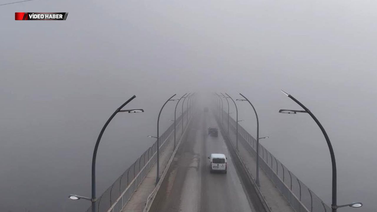 Sis bulutlarıyla bütünleşen köprü manzarası havadan görüntülendi.
