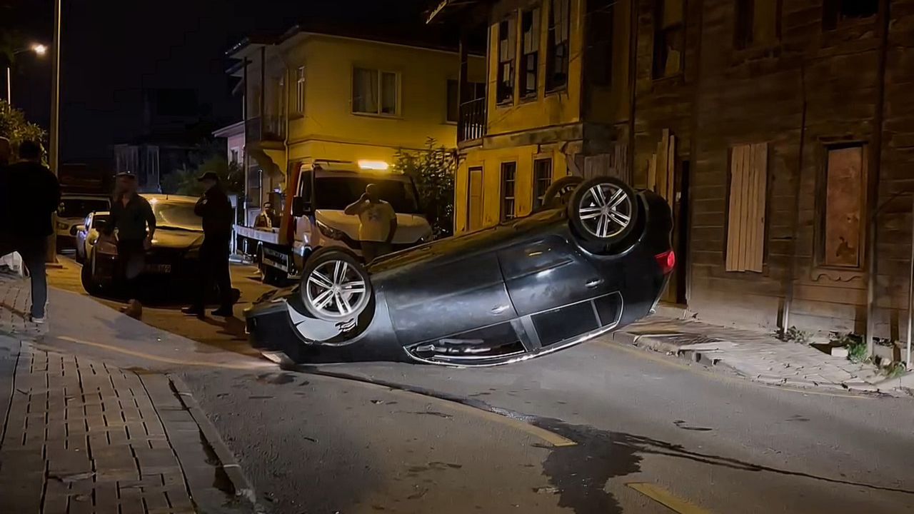 Bartın şehir merkezindeki Hamam Sokak'ta seyreden 74 ABU 862 plakalı otomobil, yoldan çıkarak kaldırıma çarptı. Takla atan otomobilde bulunan 2 kişi yara almadan kazayı atlattı. Araçtan çıkan 2 kişi de sürücü olmadığını söylerken, polis sürücünün belirlenmesi için çalışma başlattı.