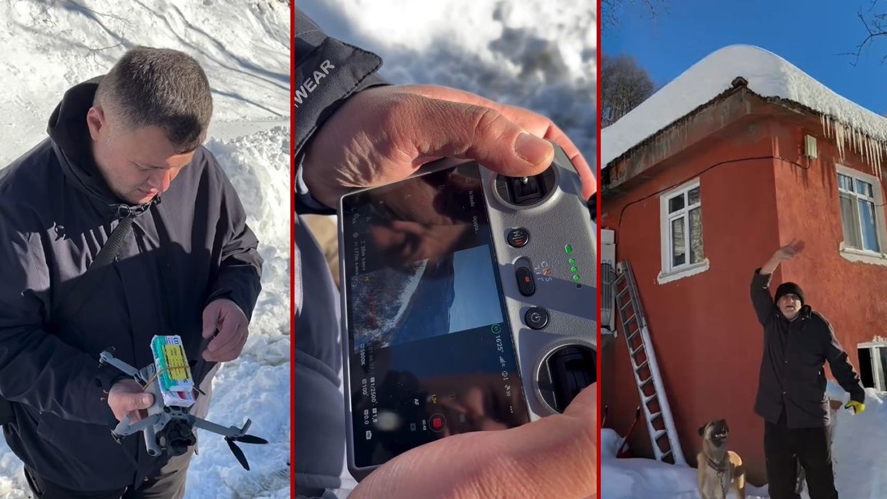 Yoğun kar ve zorlu arazi şartlarına rağmen 12 kilometrelik yeri araçla ve 1 kilometrelik yolu da yürüyerek aşan sağlık çalışanları, yürümenin mümkün olmadığı 600 metrelik mesafeyi aşamadı. Ekipler, Bozkurt ilçesinden temin edilen ilaçları bağladıkları dronu uçurarak hastaya ulaştırdı.