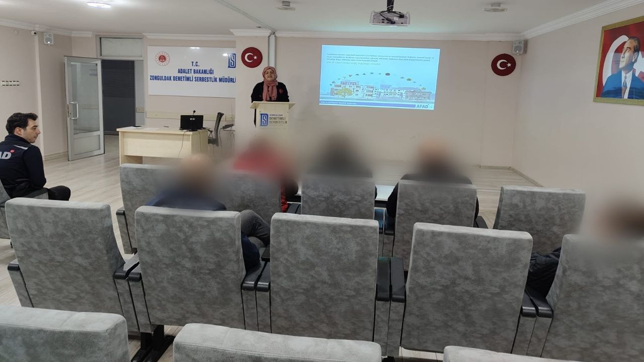 Zonguldak AFAD İl Müdürlüğü personeli Şef Necla Akyol ve Mimar Mert Karaoğlu tarafından sunum yapılan seminerde, meydana gelebilecek afet riskleri ve alınabilecek önlemler ele alındı.